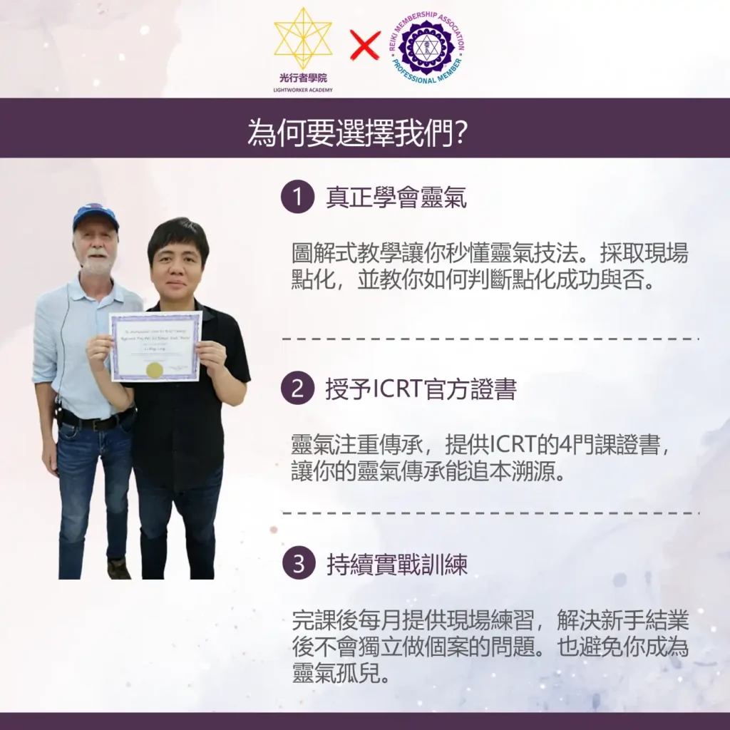 我們採用ICRT的William在1989年所開發的「臼井/西藏靈氣」系統,而且這個系統影響整個中文地區。